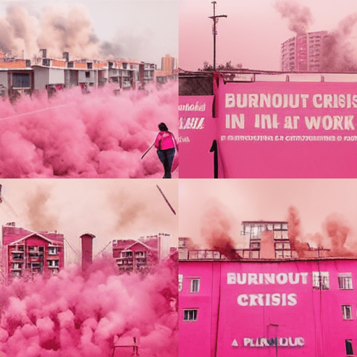 The following prompt was entered into Midjourney AI Art Generator: “The Burnout Crisis in Pink-Collar Work Plus: A housing revolution is coming. By Isabel Fattal“. It is the headline for The Atlantic article here: https://www.theatlantic.com/newsletters/archive/2022/10/the-burnout-crisis-in-pink-collar-work/671668/
