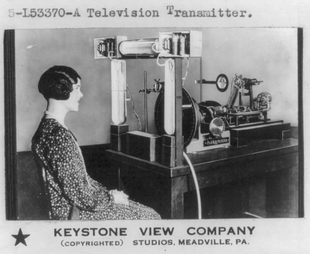 [E1] “A television transmitter, with a woman seated in front” ● Photograph from 1930 ● Library of Congress Website